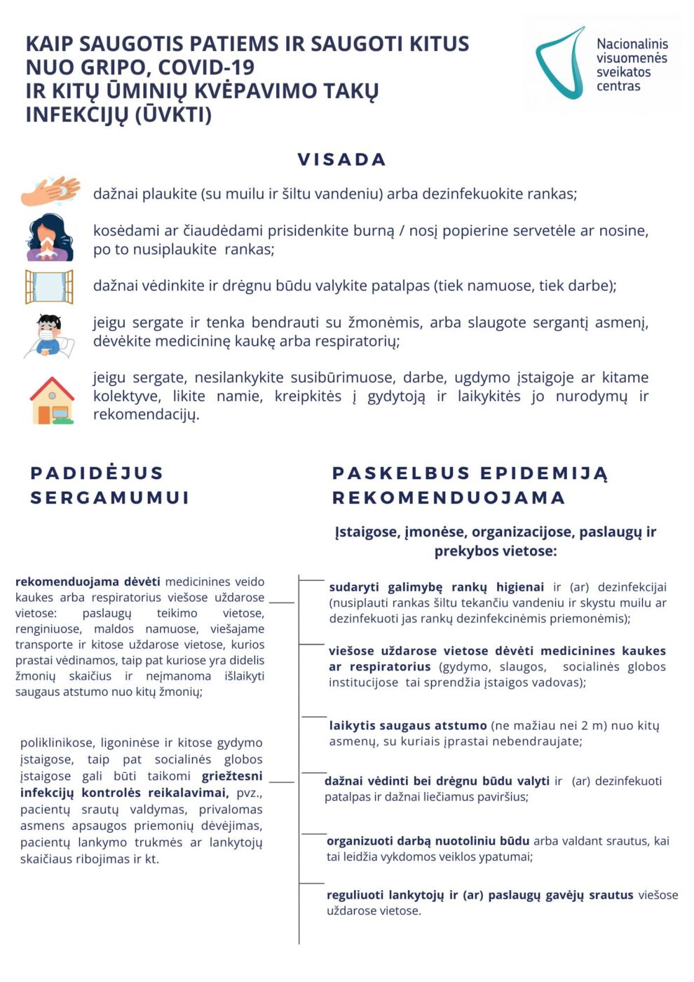 Atsižvelgiant į padidėjusį sergamumą gripu ir ūminėmis viršutinių kvėpavimo takų infekcijomis, primename apie prevencijos priemonių laikymąsi.