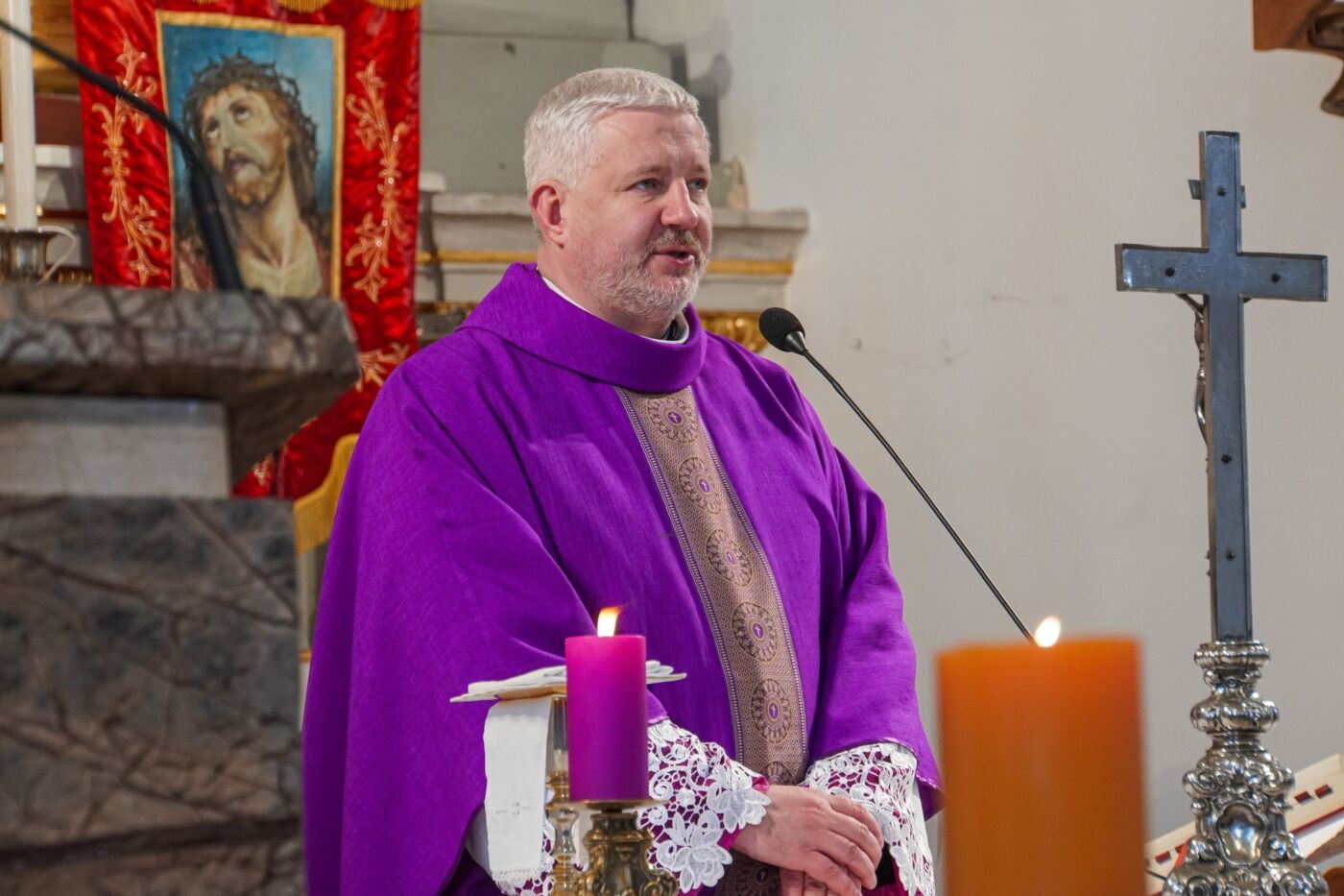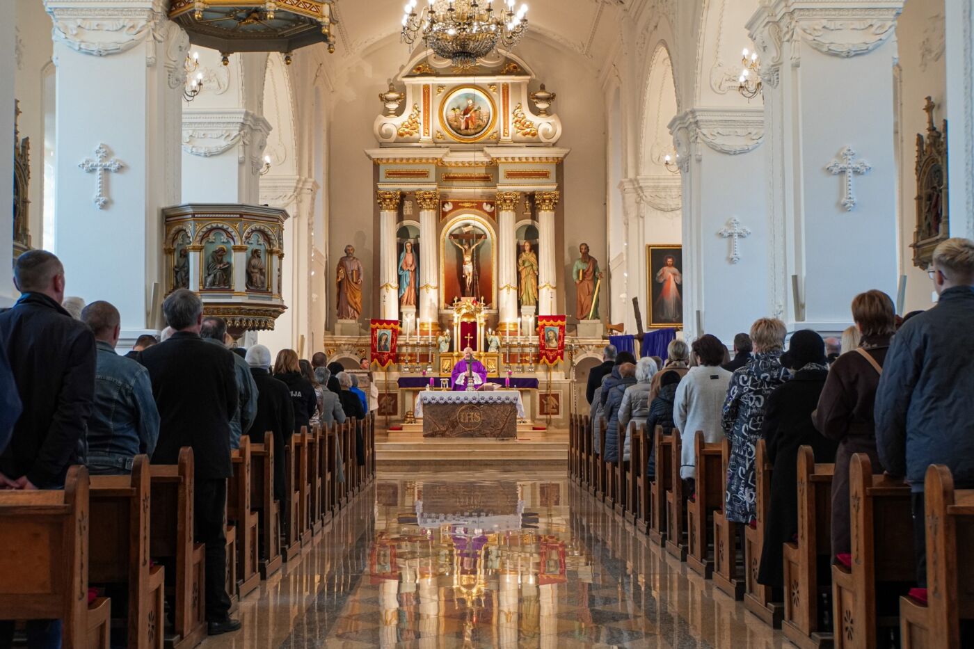 Iškilmės prasidėjo Lazdijų Šv. Onos bažnyčioje, kur už Tėvynę Lietuvą ir jos žmones šv. Mišias aukojo Lazdijų dekanato dekanas Nerijus Žvirblys.
