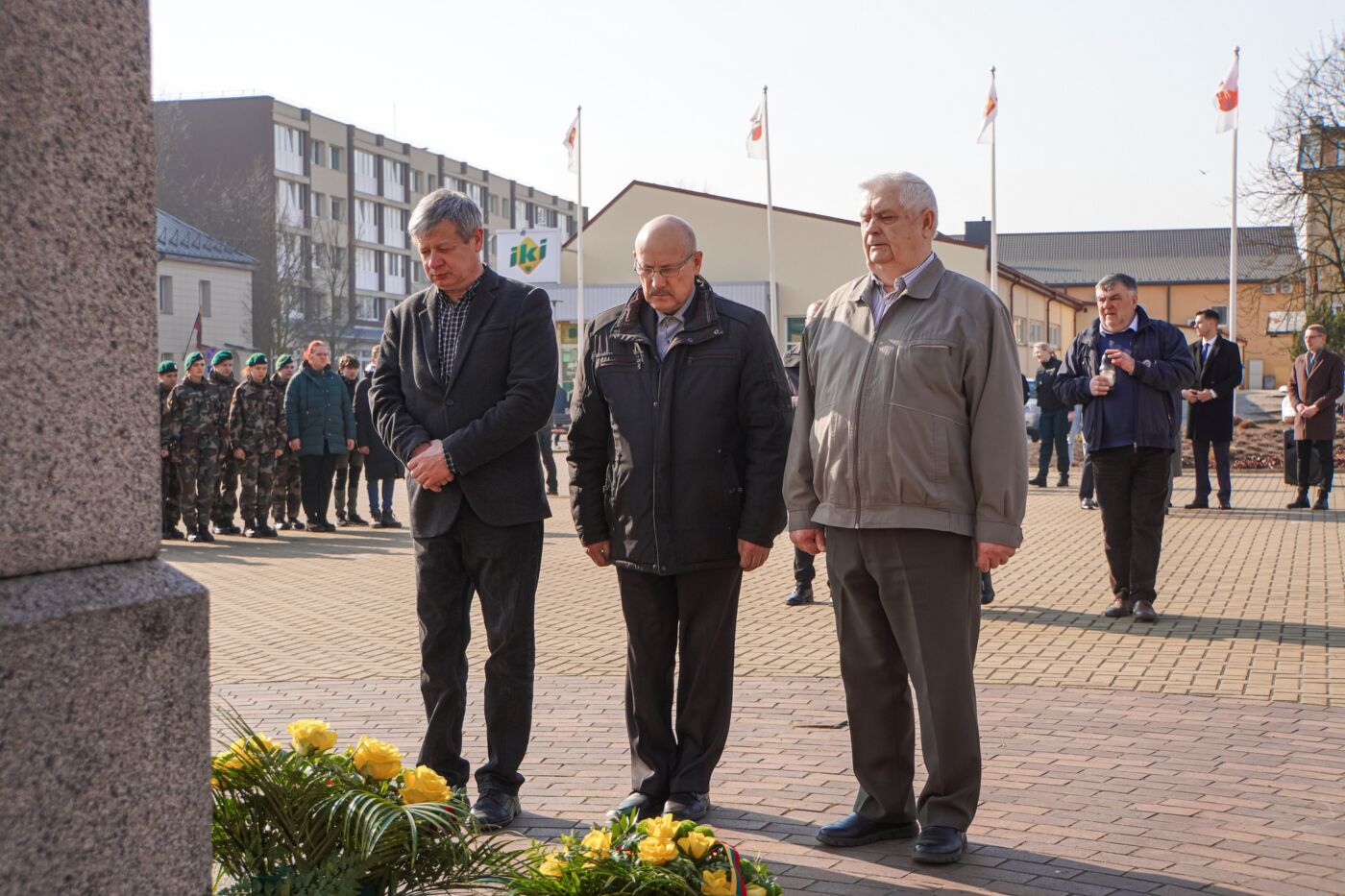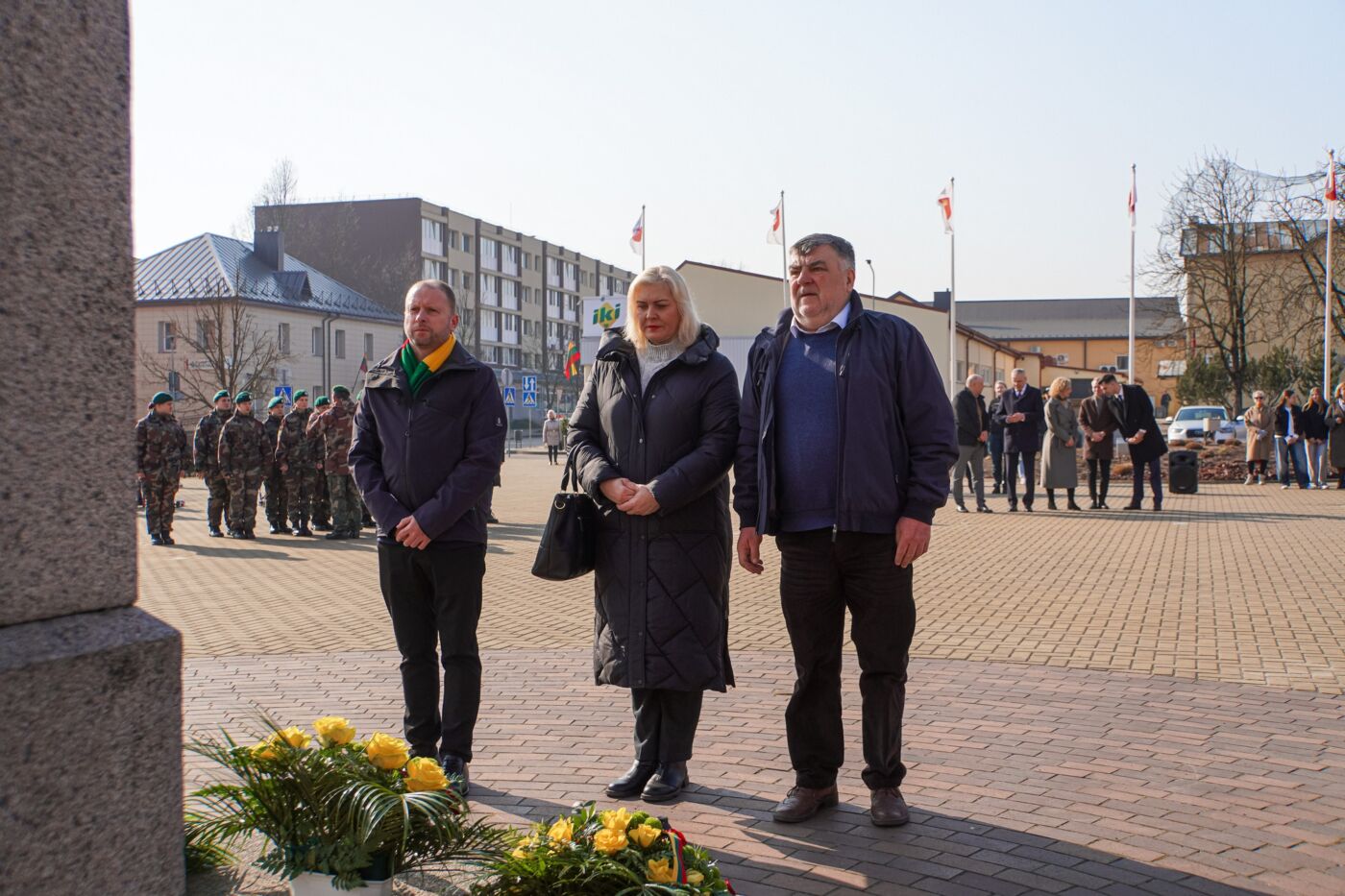 Po ceremonijos bažnyčioje, savivaldybės vadovai, tarybos nariai Lietuvos Nepriklausomybės paminklo centrinėje Lazdijų aikštėje uždegė atminimo žvakes.
