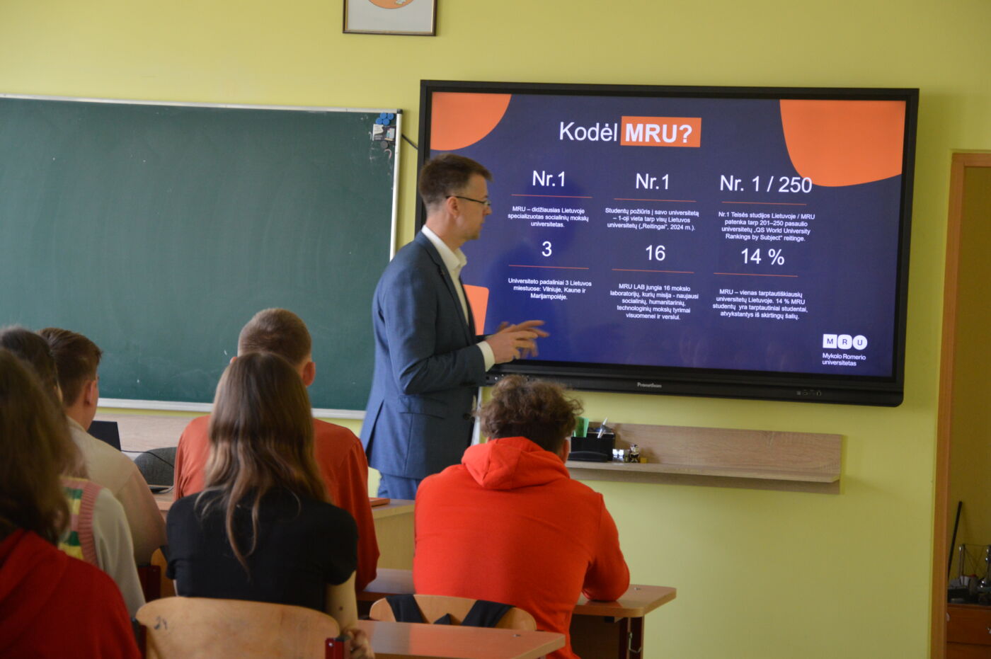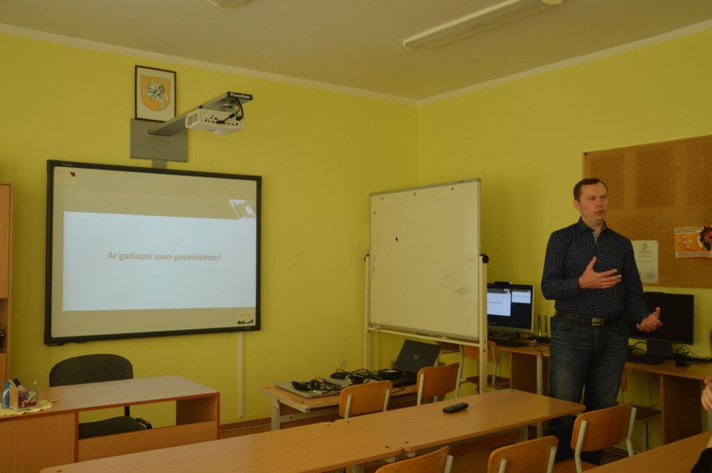 Gintaras Kalinauskas yra baigęs Lazdijų M. Gustaičio gimnaziją, jis – teisininkas, turintis patirties, dirbęs net vieno iš premjerų patarėju, taigi turėjo ką papasakoti. Atkreipė dėmesį, kad Mykolo Romerio universitetas suteikia plačias galimybes studijoms.