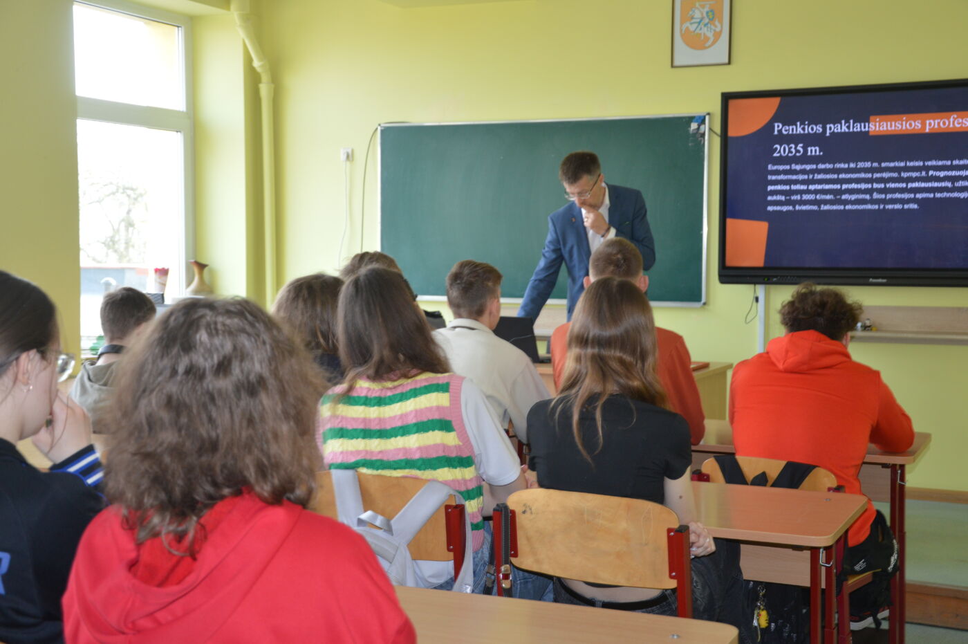 „Karjeros diena 2025“ Šeštokų mokykloje pralėkė kaip viesulas: įdomiai, žaismingai, palikdama daug minčių ir įspūdžių. Ir naudinga buvo visiems. Ne veltui karjeros specialistė Rasa Jušinskienė dėjo tiek pastangų, kad ši diena būtų įsimintina. O kai kam gal net nulems jų tolesnę ateitį renkantis profesiją.