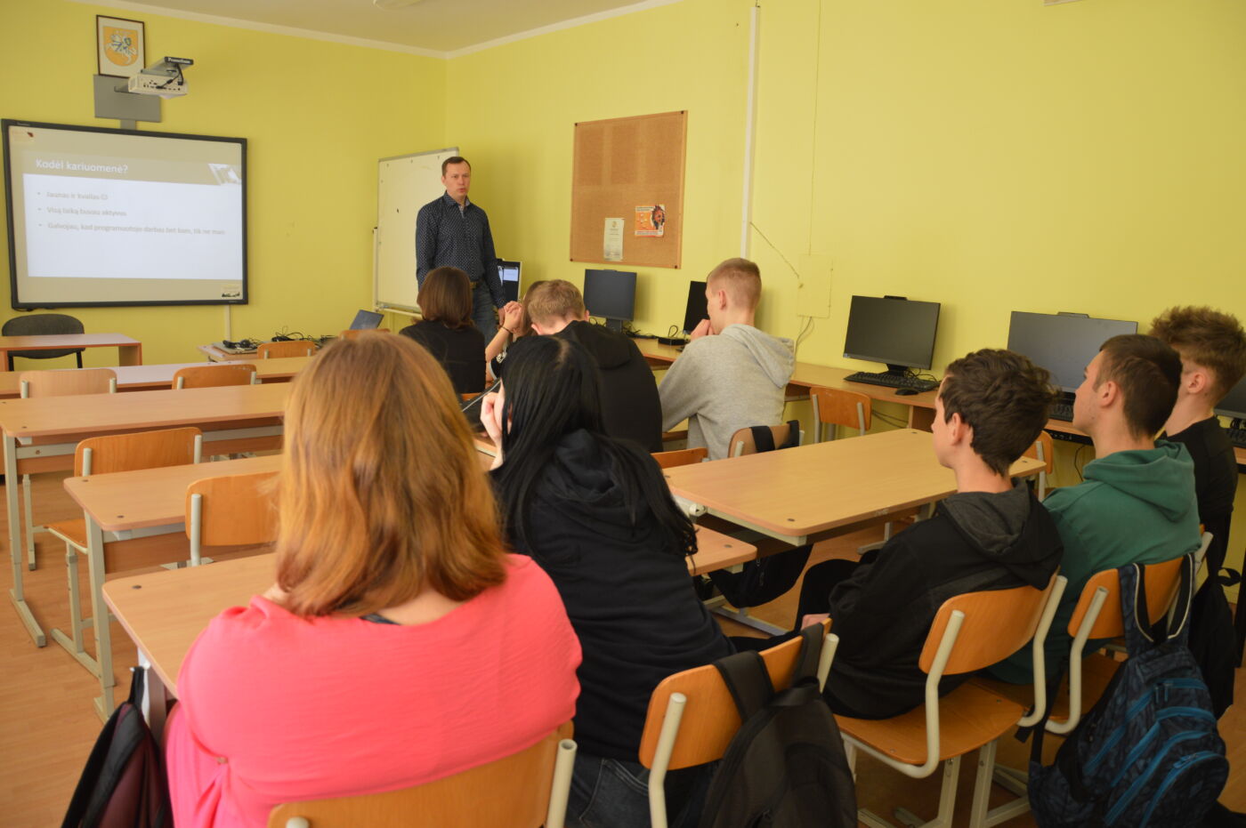O štai Linas Kancevičius, buvęs Šeštokų mokyklos mokinys, Karjeros dienose jau lankosi ne pirmus metus. Linas – logistikos vadovas UAB „Stiklita“. Linas labiausiai norėtų įtikinti moksleivius, kad jie gali pasiekti išties daug, studijuoti, lipti karjeros laipteliais. Prisipažino, kad jis pats, dar besimokydamas mokykloje, niekad nemanė, jog taps vadovu ir vadovaus 20 žmonių komandai. Sako, kalbą tenka rasti su visais: ir su vyresniosios kartos atstovais, kurie už patį Liną vyresni, ir su jaunais. „Sėdame ir kalbamės. Išklausau patarimų, atsižvelgiu į pastabas. Prie kiekvieno darbuotojo reikia mokėti prieiti, rasti bendrą kalbą. Kartais darbuotoją išleidi anksčiau, kitą kartą jis sutinka padirbėti ilgiau, jei tenka atlikti svarbų užsakymą. Vienas kitą turime suprasti. Iš manęs reikalaujama gerų rezultatų, aš taip pat to reikalauju iš darbuotojų“, – sako Linas.