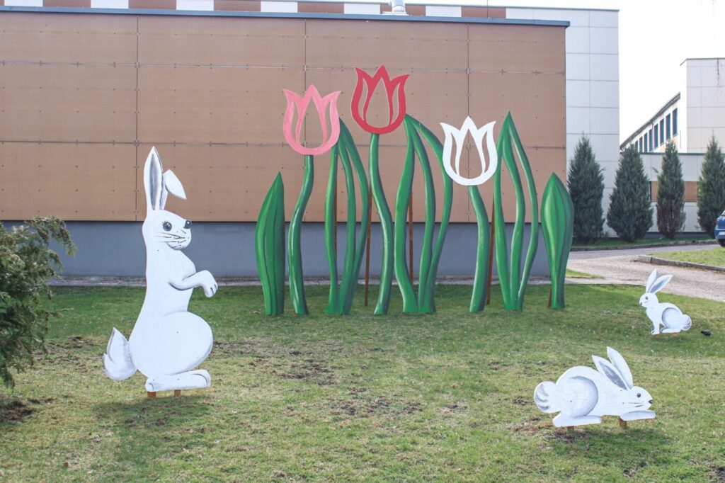 Įvairius Lazdijų krašto kampelius papuošė margučiai, sužaliavo simboliniai sodai, o bendruomenių rankomis sukurti papuošimai kviečia stabtelėti, nusišypsoti ir pajusti artėjančių šv. Velykų dvasią.