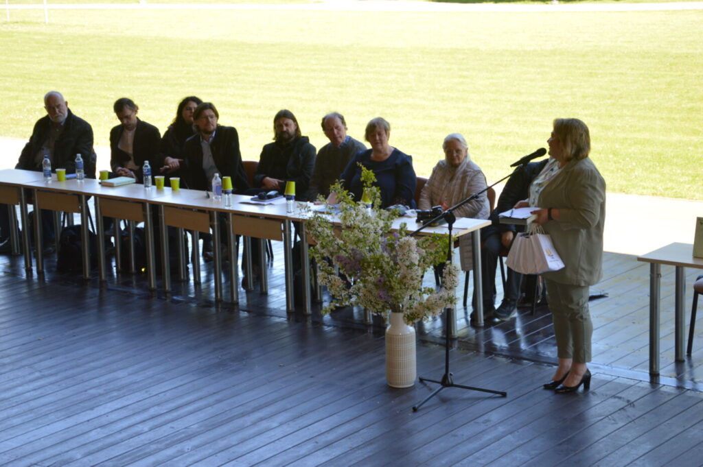 Lazdijų viešosios bibliotekos direktorės pavaduotoja Asta Mickevičienė įteikė svečiams bibliotekos suvenyrus.