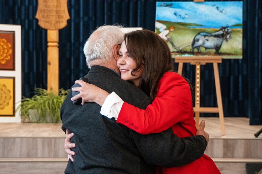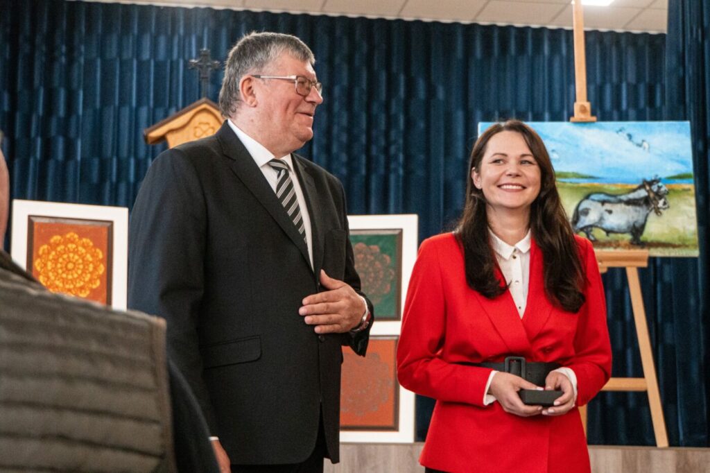 Simbolines dovanėles menininkams įteikė merė kartu su Veisiejų seniūnu Zenonu Sabaliausku.