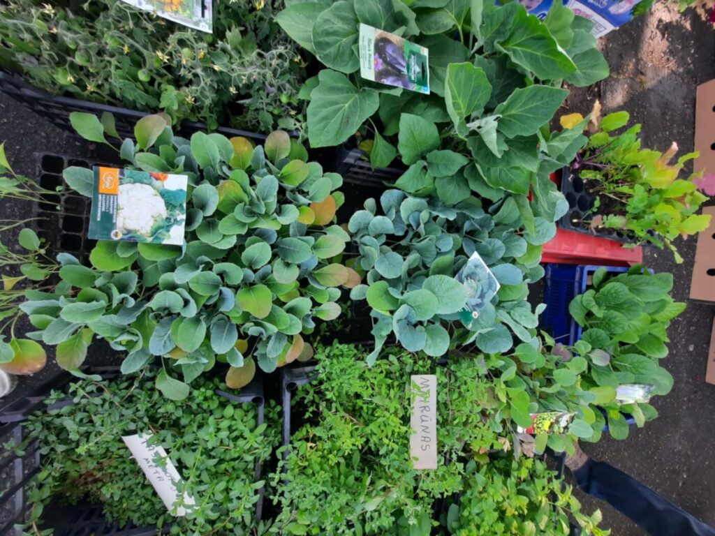 Turgelyje gausu įdomybių. Nematyti garbiniuoti bazilikai, kurių sėklų ir pati augintoja netikėtai pamačiusi parduotuvėje. Pasėjusi – dabar pardavinėja: vienas daigelis – 1 Eur. Bet kupstelis mėtų – braškinių, citrininių ir net pelyno sodinimui – 2 Eur.