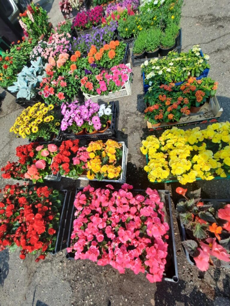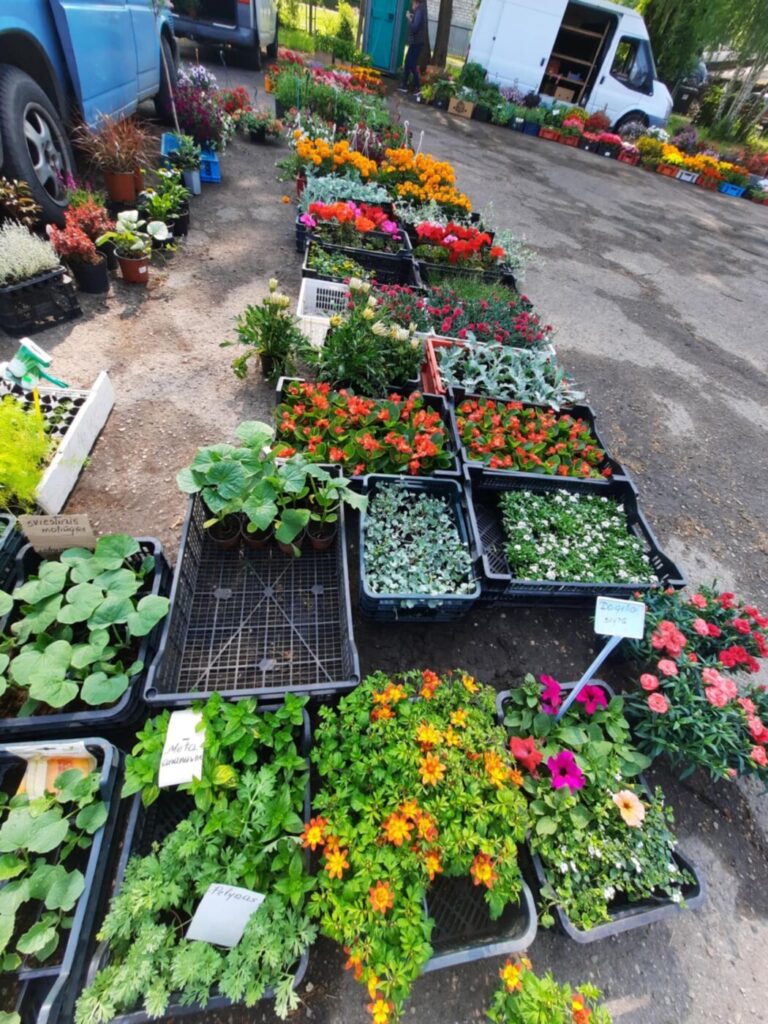 Lazdijų turgelyje spalvų netrūksta. Spalvoti turgaus gėlių kilimai – gražu pasižiūrėti, o ir prekeiviai parduoti gėlių neskuba, kiek nuperka, tiek gerai. Gėlės vazonėliuose, tad pirkti bus galima visą vasarą.
