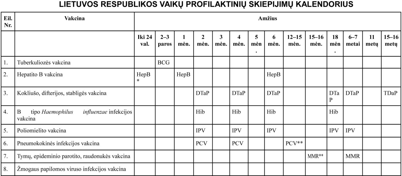 Vakcinos būna kombinuotos, tai reiškia, kad vieno skiepo metu paskiepijama nuo kelių ligų.