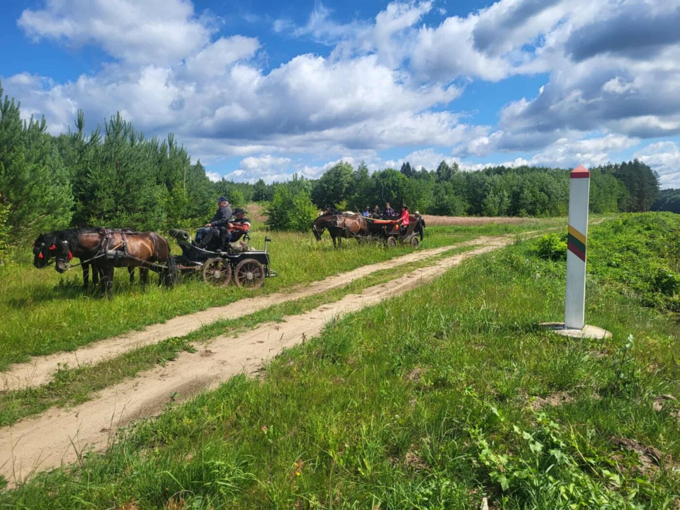 Visai neplanuotai ir netikėtai birželio 29-ąją, Pasieniečių dieną, minint tarnybos įkūrimo 105-metį, Lazdijų žirgininkų klubo žygis tęsėsi ir pasieniu, palei Nemuną, Sventijansko, Bugiedos, Varviškės apylinkėmis. Žygyje dalyvavo ir buvęs Valstybės sienos apsaugos tarnybos Lazdijų rinktinės Pazapsių užkardos vadas, daugkartinis Lietuvos arimo arkliais varžybų nugalėtojas Algirdas Motiejūnas. Kolegų tądien nesutiko nei pats Algirdas, nei jo žygio draugai. Tik pasieniečių kameros akylai stebėjo neregėtus svečius tuose kraštuose: jos sukiojosi ir lydėjo žygeivius visu maršrutu palei Nemuną iki pat koncertinos. „Mes ir pamojavome, ir širdutes rankomis rodėme, jei pasieniečiai mus stebėjo, suprato, kad esame draugiškai nusiteikę, sveikiname juos su profesine švente. Net pajuokavome, kad kameros, ko gero, „skaičiavo“: ar visi nuvažiavome šį ruožą, nė vienas neprapuolėme“, – vis pajuokaudamas pasakoja buvęs Lazdijų žirgininkų klubo prezidentas Valdas Žička. Lietuvos pakraštys (kitoje Nemuno pusėje jau Baltarusija) nepaprastai gražus. Atsiveria nuostabus vaizdas: prieš akis – tekantis Nemunas. Tiesa, ir pasikeitimų čia yra – laikas nestovi vietoje. „Kai apžiūrinėjome būsimą maršrutą dar prieš žygį, ieškojome medinio tilto ant polių per Baltąją Ančią, o jo, pasirodo, seniai nėra, vietoj jo – naujas. Sutikta vietinė moteris, kai pasakėme, kad ieškome to medinio tilto, net paklausė, kuriame amžiuje gyvename“, – juokiasi pasakodamas Valdas. Paklaustas, ar žygeiviai meškos nesutikę savo kely, juokiasi, jog važiavę ir pro Varviškę, ir pro Rūdos mišką, bet lepečkojės nematę.
