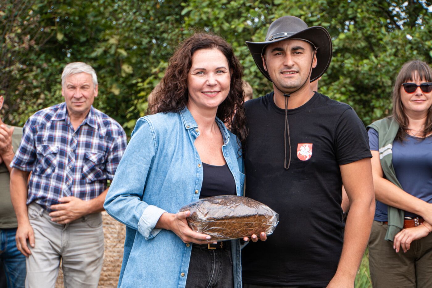 Šventės dalyviai buvo prasmingai pagerbti – Lazdijų rajono savivaldybės merė Ausma Miškinienė kartu su laukų šeimininku M. Bernatoniu ąžuolo vainikais apdovanojo vyriausią artoją Algimantą Macionį bei jauniausius – Adomą Sujetą ir Roką Macionį.