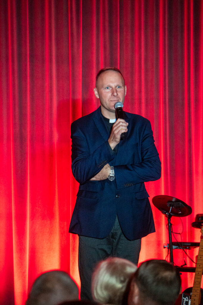 Simbolinę juostelę perkirpo projekto partneriai ir rėmėjai, pastatą pašventino klebonas Žydrūnas Burnys.