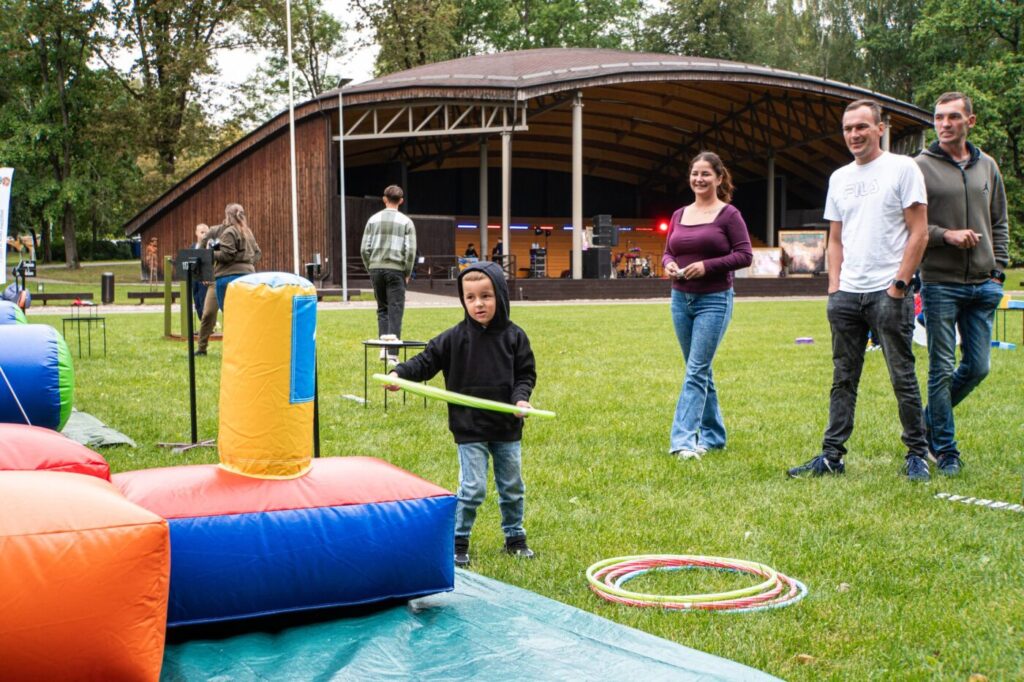 Po šventės ugdymo įstaigose visų laukė išskirtinis susitikimas Lazdijų miesto parke. Čia, po atviru dangumi, garsiai ir linksmai buvo atvertos naujųjų mokslo metų durys. Parkas prisipildė muzikos, šypsenų ir gyvo šurmulio – šeimos ištiesė pledus ant žolės, vaikai ir suaugusieji džiaugėsi Pramogų ambasados siūlomais žaidimais.