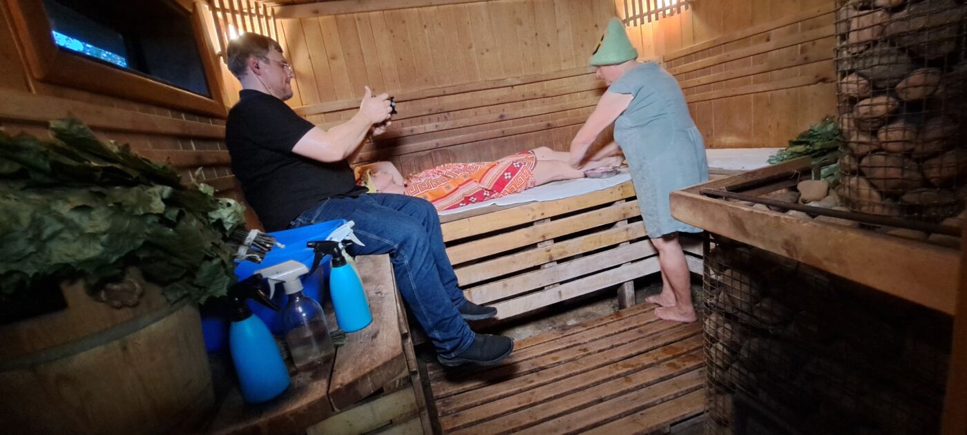 „Mes taip užsiėmę buvome – tai koncertas, tai paskaitos gimnazijoje, tai edukacijos, tai pas mus į pirtį žmonės atvažiuoti turėjo, dar sąskrydyje pas kolegą pirtininką turėjome sudalyvauti, paskambino žurnalistai, kad reikia filmuoti laidą, tad mes nei pasiruošti nespėjome“, – prisipažįsta pirtininkas Rimantas. Laimei, pagelbėjo. „Dėkojame už skanius ir gražius vieno kąsnio sumuštinukus Anetai Navakauskaitei, už puikias dzūkiškas bandas, kurios visiems labai patiko, Irenai Gradeckienei“, – dėkoja Rimantas, mat kaipgi dzūkai svečių nepavaišins, o ir be lauktuvių nedera išleisti.
