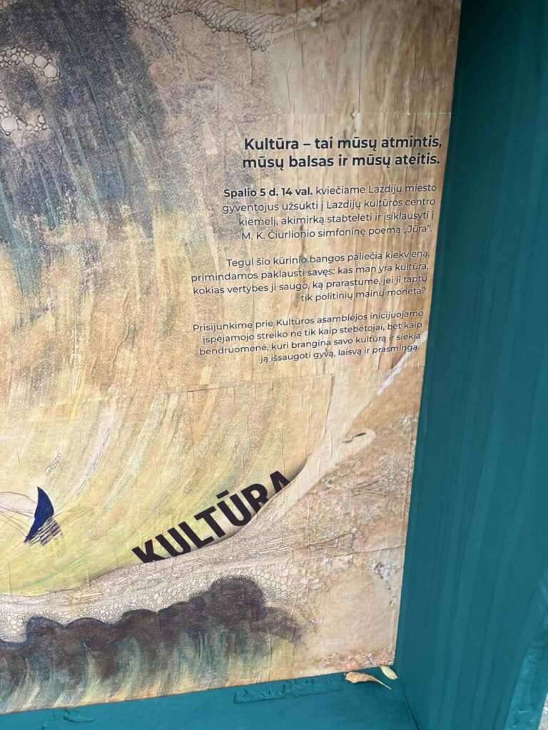 „Kultūra – tai mūsų atmintis, mūsų balsas ir mūsų ateitis“, – skelbia meninė instaliacija prie kultūros centro. Ji kviečia prisiminti, jog kultūra – tai ne prabanga, o kasdienis mūsų bendrumo ir prasmės šaltinis.