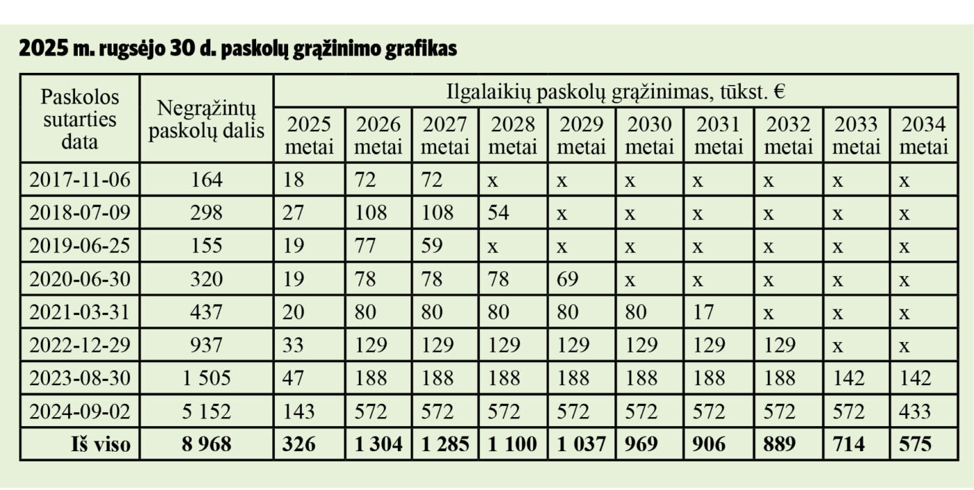 – Patikslinu, kad per 10 mln. eurų skolinių įsipareigojimų bus su paskutine paskola, kurios dar nesame paėmę, sprendimas priimtas tik praėjusį penktadienį. Visos paskolos yra grąžinamos iš savivaldybės biudžeto, tai yra iš savivaldybės prognozuojamų pajamų. Be jokios abejonės, savivaldybės administracija atsakingai planuoja prisiimtus įsipareigojimus ir kiekvienų metų savivaldybės biudžete suplanuoja asignavimus tiems kalendoriniams metams tenkančiai paskolų daliai grąžinti.