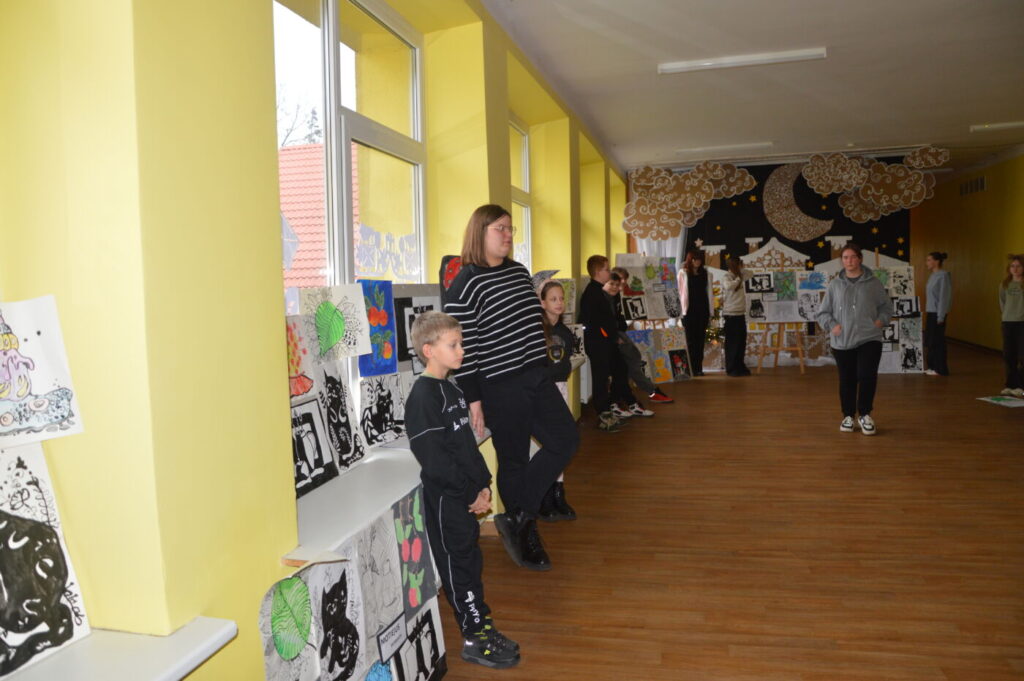 Parodoje eksponuojami 23 mokinių darbai – viena mergaitė, nors dailės skyriaus nelanko, labai norėjo parodyti savo kūrybą, tad buvo priimta kaip bendruomenės draugė.