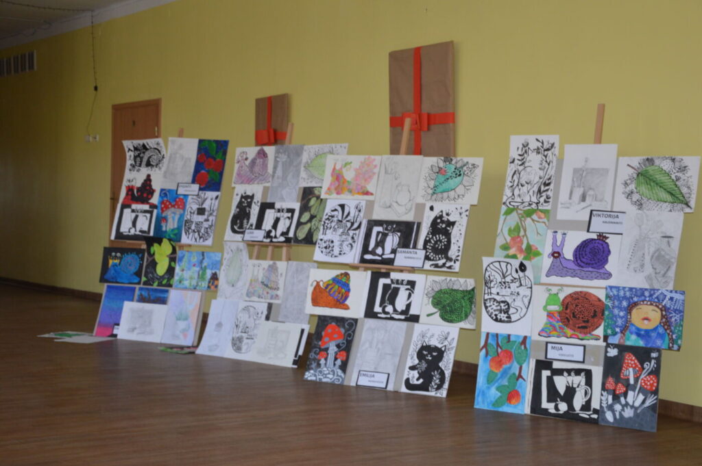 Peržiūrai pristatyti tapybos ir grafikos darbai, keramiką buvo galima apžiūrėti dailės kabinete. Dėmesį traukė ir erdviniai kūriniai, sukurti iš antrinių žaliavų – taip mokiniai mokosi daiktams suteikti „antrą gyvenimą“.