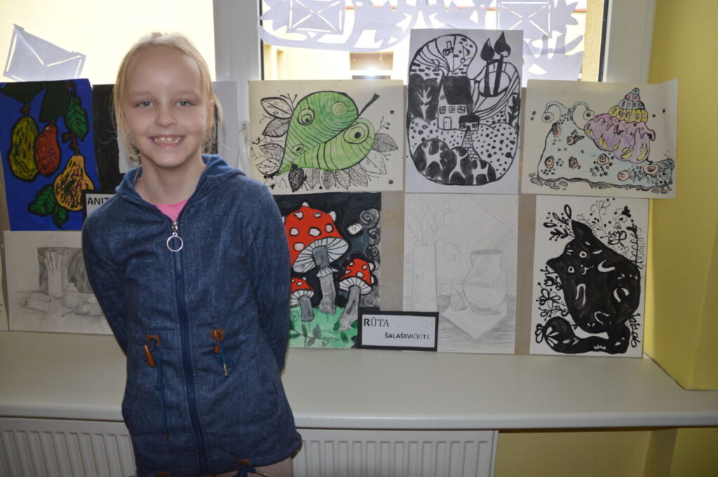 Šiuo metu dailės skyrių lanko 22 mokiniai nuo 2 iki 8 klasės. Kasmet vieni baigia, kiti ateina – taip skyrius auga. Mažiesiems dar reikia pagalbos, vyresnieji dirba savarankiškai. Kiekvienas peržiūrai turėjo pateikti po dešimt darbų, o vieną – visiškai laisvos temos, pasirinkta technika.