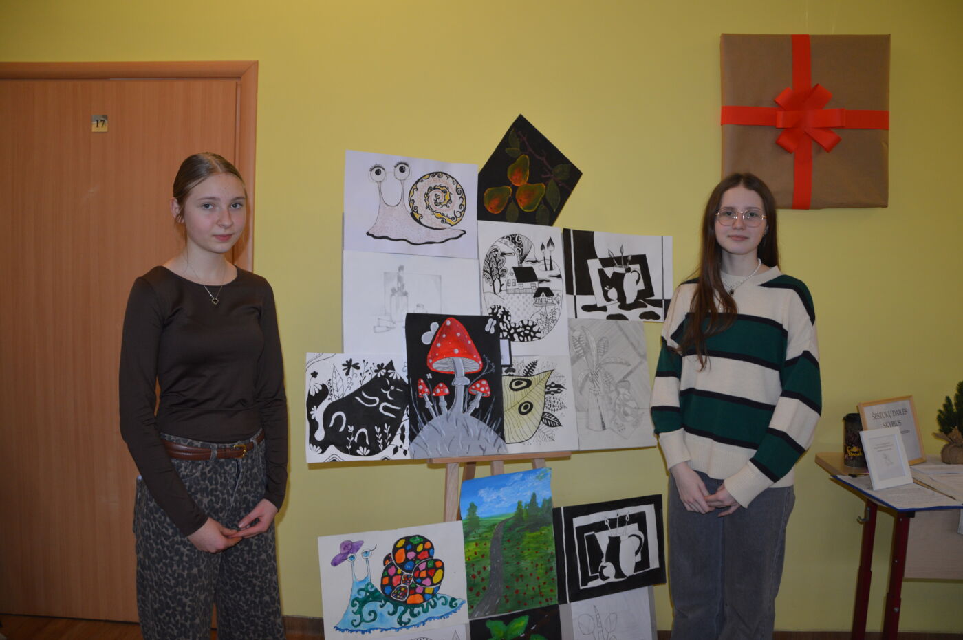 Peržiūrai pristatyti tapybos ir grafikos darbai, keramiką buvo galima apžiūrėti dailės kabinete. Dėmesį traukė ir erdviniai kūriniai, sukurti iš antrinių žaliavų – taip mokiniai mokosi daiktams suteikti „antrą gyvenimą“.