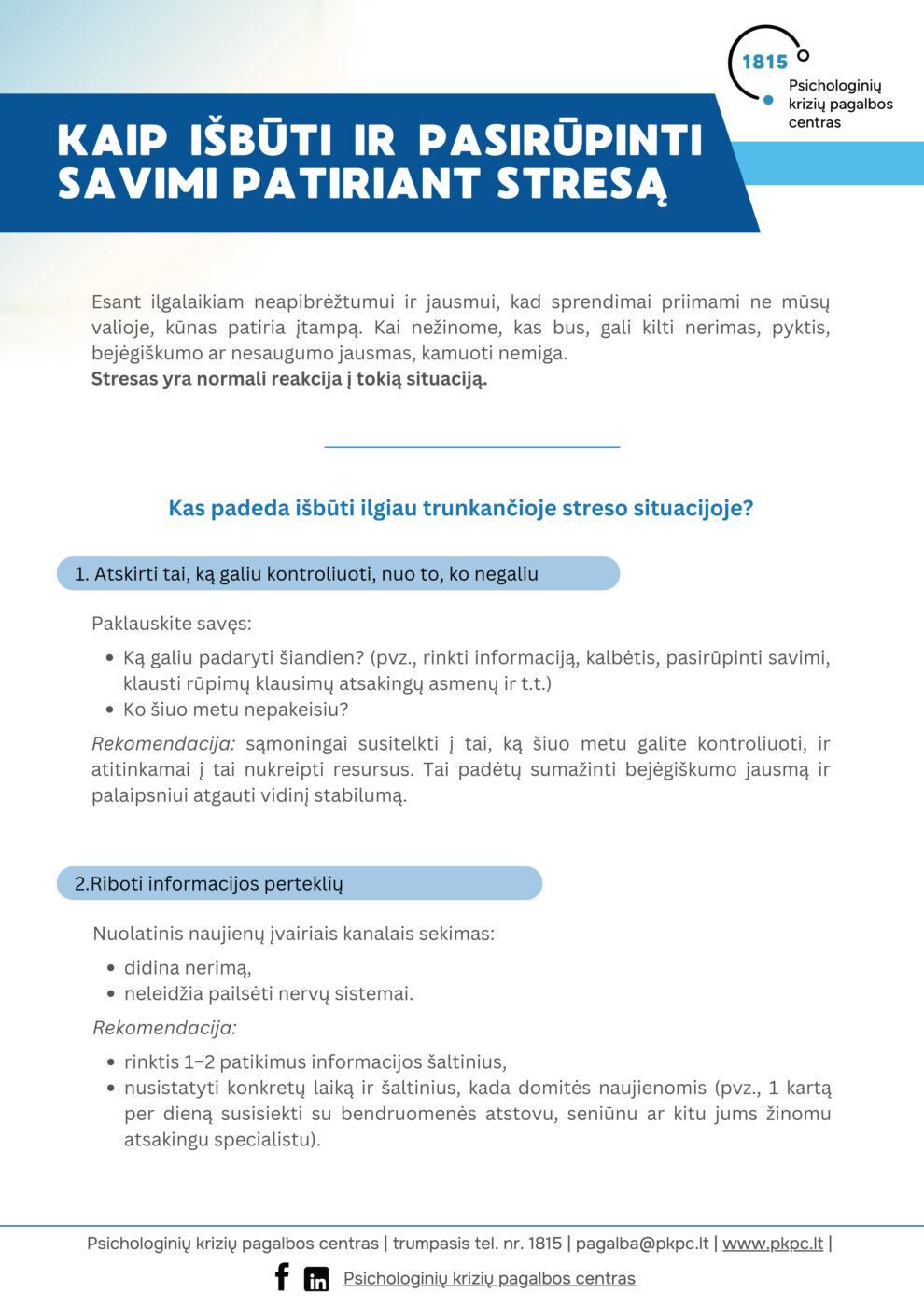 - gauti specialistų rekomendacijas, kaip tvarkytis su stresu ir nerimu.