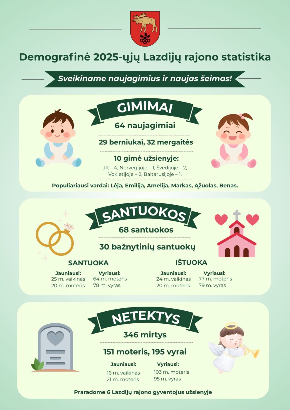 Jau tapo tradicija metų pradžioje įvertinti praėjusius metus. Vienas svarbiausių rodiklių – demografinė rajono situacija. Deja, skaičiai 2025-aisiais nedžiugina: gimusiųjų sumažėjo, mirčių padaugėjo. Mūsų – mažėja.