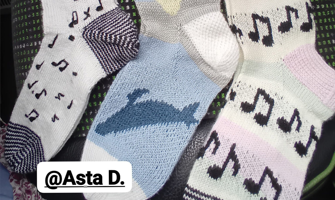 16-ojo kojinių mezgimo čempionato parodoje Radviliškyje neliko nepastebėti mūsų kraštietės Astos Dimšienės darbai – mezgėja iš Veisiejų pelnė antrąją vietą, o jos kojinės pagal dukrų piešinius įamžino M. K. Čiurlionio kūrybos dvasią.