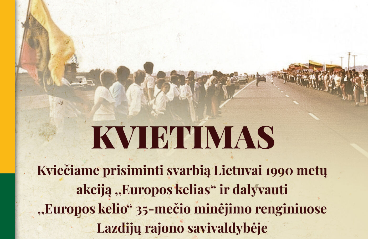 Kviečiame kartu prisiminti Lietuvai svarbią 1990 m. akciją „Europos kelias“ ir dalyvauti jos 35-mečio minėjimo renginiuose Lazdijų rajone!