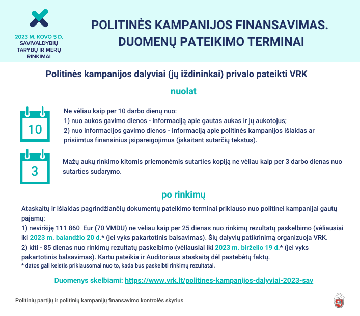 Detali informacija apie tai, kas, kada ir kokią sumą paaukojo politinės kampanijos dalyviams, skelbiama ir nuolat atnaujinama VRK interneto svetainėje.